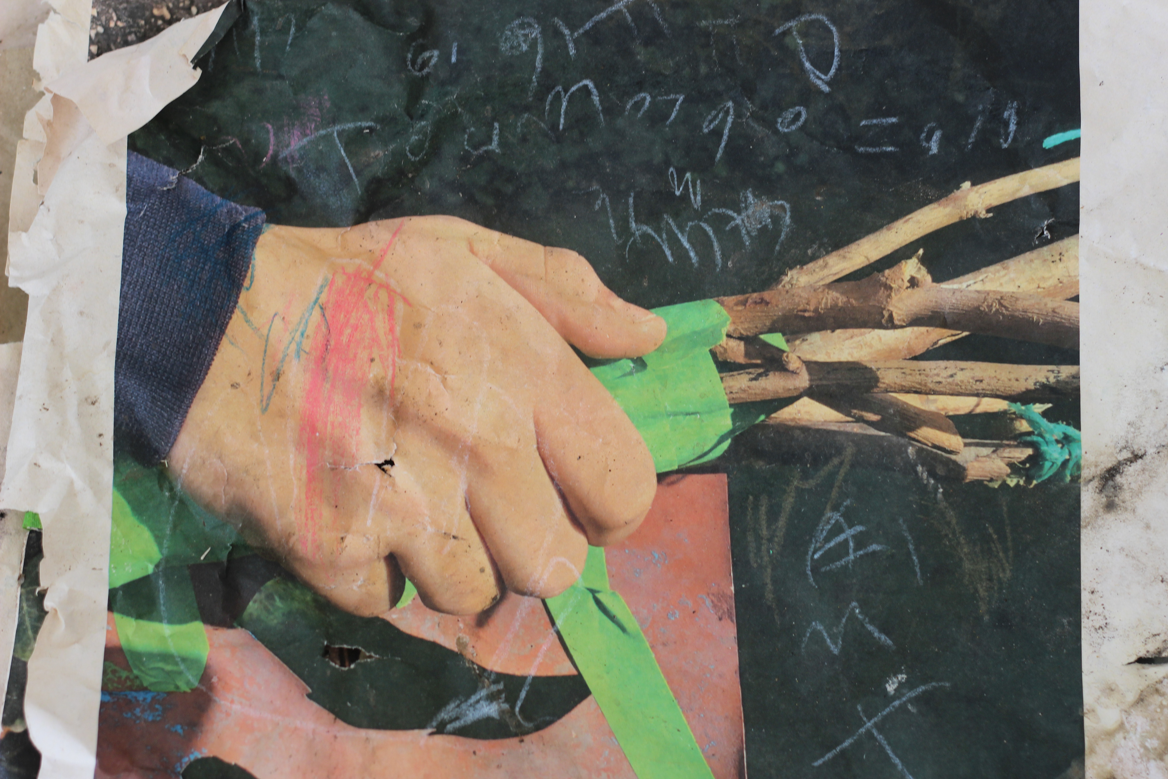 Exploring fabric and paper cutouts, we began returning images of gestures and hands to the groups to use at various scales for collage and reflection. This was initiated as a way to share and discuss workshop imagery with our groups - the images often gestural and cropped act, have a short lifespan acting as ‘research and recording’ rather than something to use, discuss, or cut out and around. Other moments of exchange were recorded through expired darkroom paper, gathered and wrapped around hands, capturing the fingers pressing and moulding.