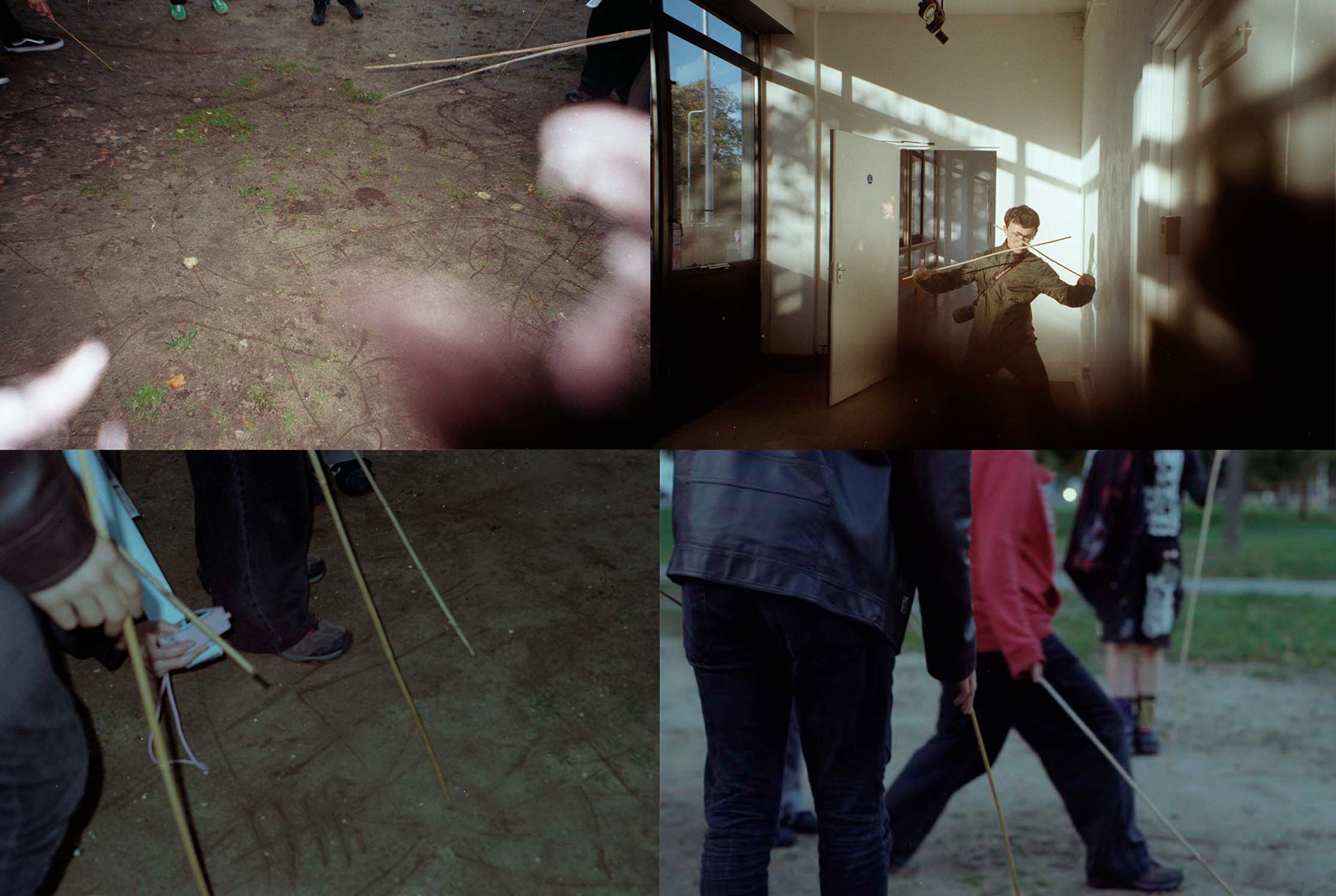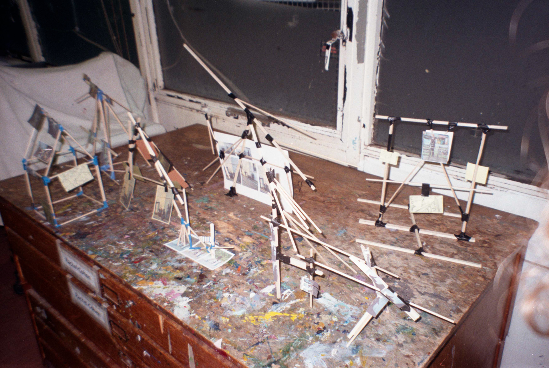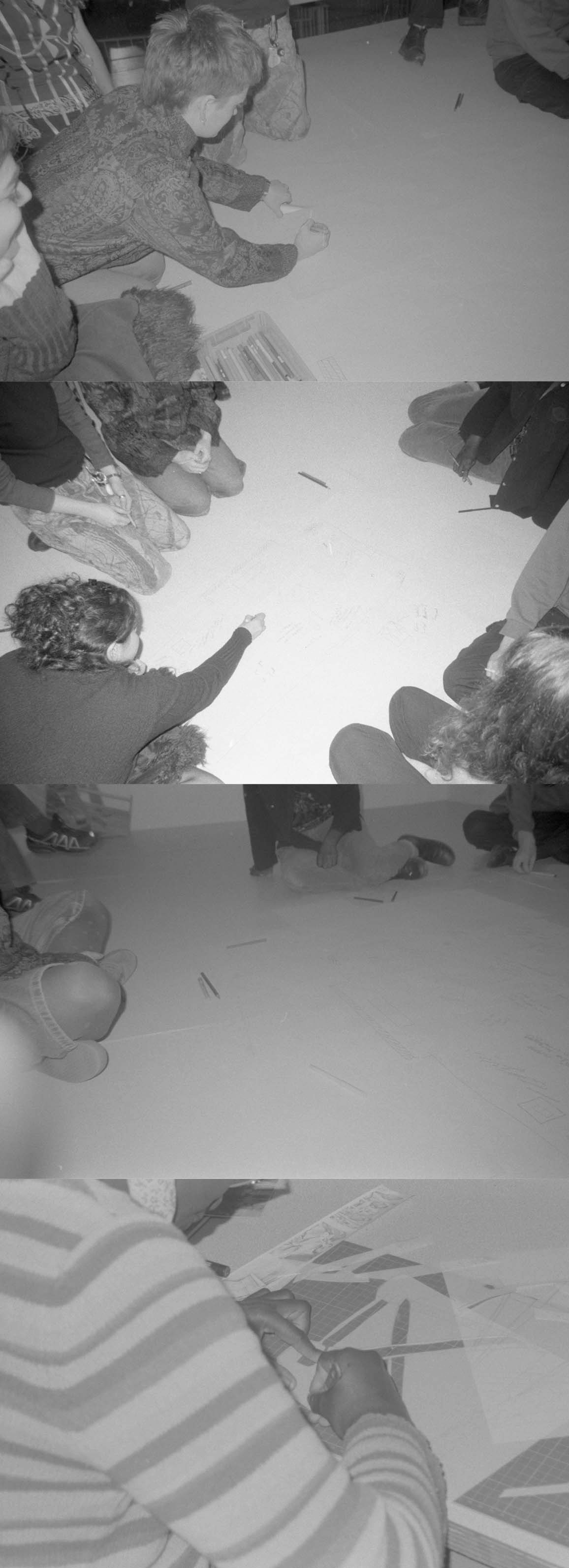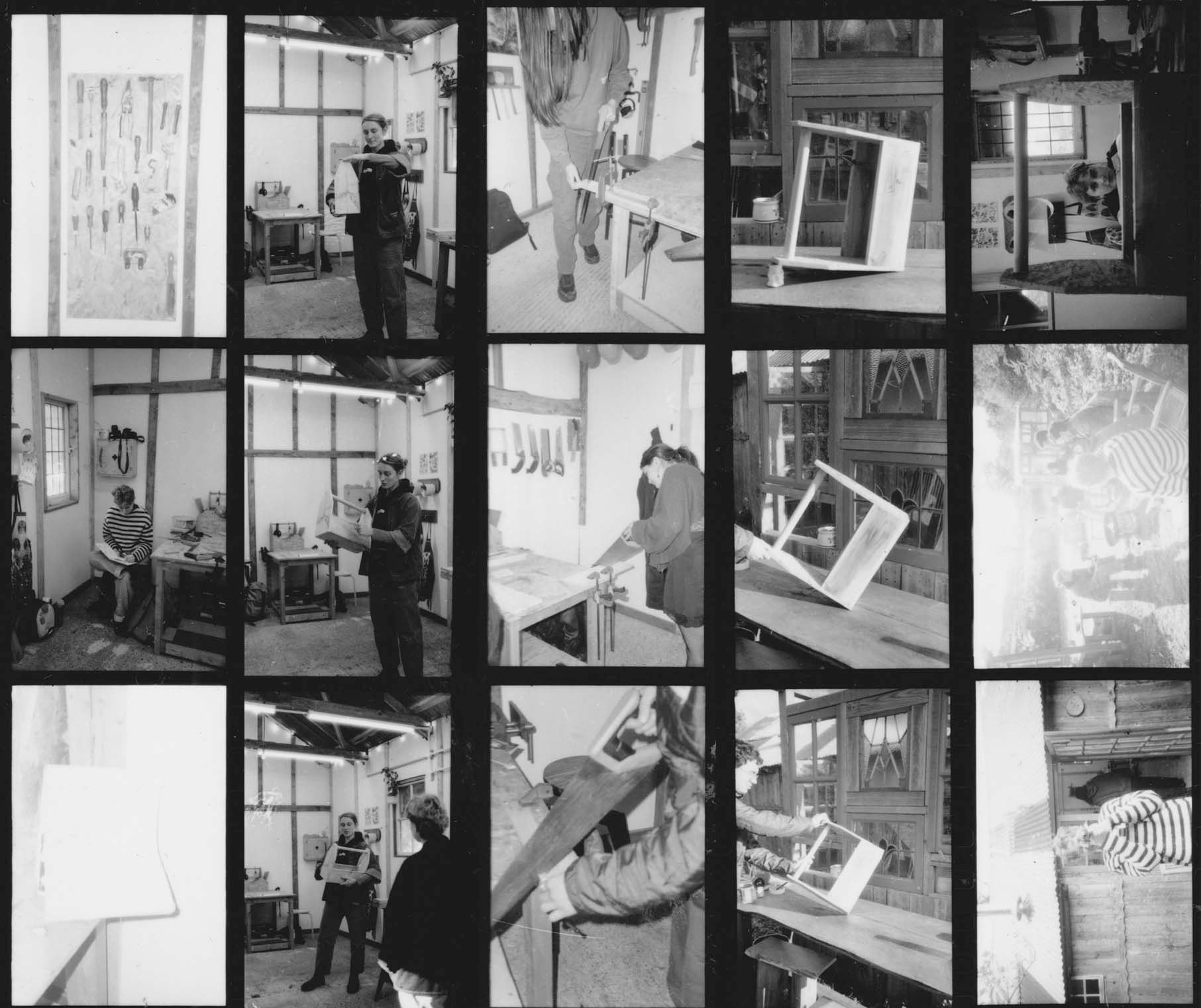 Across three months, the group’s shared enquiry moved between photography, sculpture, and research. Early sessions centred performance as a mode of thinking, staging the prompt to build a shelter together using wooden sticks and a cable release, allowing images to be produced collectively. These photographs were subsequently reworked and re-situated, placed as objects on sculptural models of houses and shelters, and installed as layered wall works that reveal fragments and visual associations beneath them.